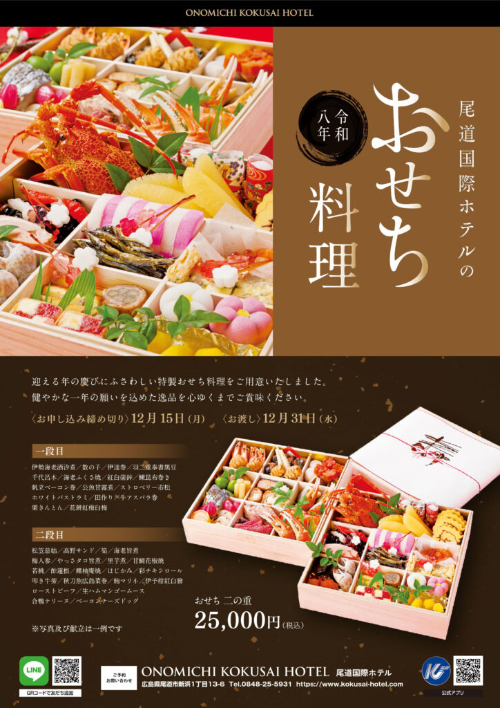 尾道国際ホテルでは、毎年ご好評いただいている「お節料理」のご予約受付を開始いたしました。